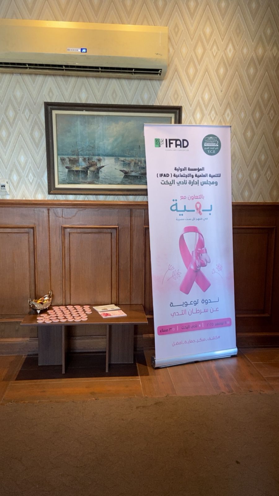 نظّمت المؤسسة الدولية للتنمية العلمية و الاجتماعية(IFAD) بالتعاون مع مؤسسة بهية جلسة توعوية في نادي اليخت حول مرض سرطان الثدي، ركّزت على أهمية الكشف المبكر وطرق الوقاية منه. تأتي هذه المبادرة في إطار التزام المؤسسة الدولية للتنمية العلمية والاجتماعية (IFAD) بالتنمية المجتمعية ونشر الوعي الصحي.